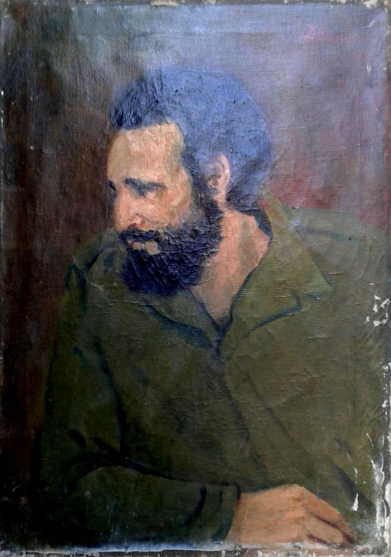 Портрет на кубинския лидер Фидел Кастро. Автор вероятно е военният художник Димитър Вълканов. Вж. подпис.