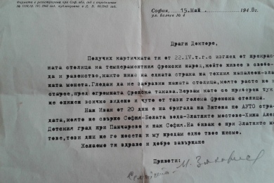 Писмо от М. Захариев до „Доктора“, София, 15 май 1948 г.